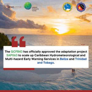 The Green Climate Fund (GCF) Board #GCFB43 has officially approved adaptation project SAP063 to scale up hydrometeorological and early warning services in Belize and Trinidad